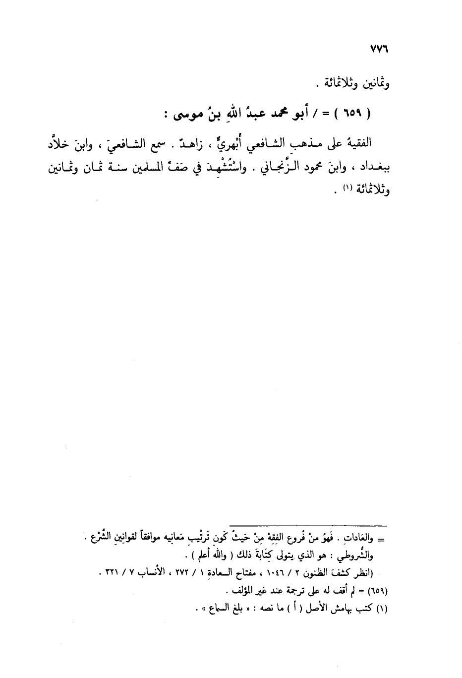 §أَبُو مُحَمَّدٍ عَبْدُ اللَّهِ بْنُ مُوسَى الْفَقِيهُ عَلَى مَذْهَبِ الشَّافِعِيِّ أَبْهَرِيُّ، زَاهِدٌ سَمِعَ الشَّافِعِيَّ، وَابْنَ خَلَّادٍ بِبَغْدَادَ، وَابْنَ مَحْمُودٍ الزَّنْجَانِيَّ، وَاسْتُشْهِدَ فِي صَفِّ الْمُسْلِمِينَ سَنَةَ ثَمَانٍ وَثَمَانِينَ وَثَلَاثِمِائَةٍ