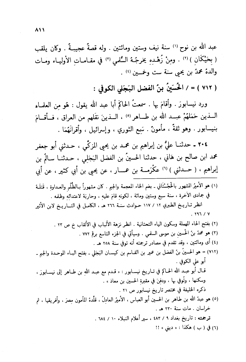 §الْحُسَيْنُ بْنُ الْفَضْلِ الْبَجَلِيُّ الْكُوفِيُّ وَرَدَ نَيْسَابُورَ، وَأَقَامَ بِهَا سَمِعْتُ الْحَاكِمَ أَبَا عَبْدِ اللَّهِ يَقُولُ: هُوَ مِنَ الْعُلَمَاءِ الَّذِينَ حَمَلَهُمْ عَبْدُ اللَّهِ بْنُ طَاهِرٍ الَّذِينَ نَقَلَهُمْ مِنَ الْعِرَاقِ، فَأَقَامَ بِنَيْسَابُورَ، وَهُوَ ثِقَةٌ، مَأْمُونٌ سَمِعَ الثَّوْرِيَّ، وَإِسْرَائِيلَ، وَأَقْرَانَهُمَا