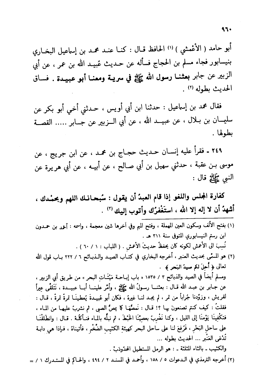 فَقَرَأَ عَلَيْهِ إِنْسَانٌ حَدِيثَ حَجَّاجِ بْنِ مُحَمَّدٍ، عَنِ ابْنِ جُرَيْجٍ، عَنْ مُوسَى بْنِ عُقْبَةَ، حَدَّثَنِي سُهَيْلُ بْنُ أَبِي صَالِحٍ، عَنْ أَبِيهِ عَنْ أَبِي هُرَيْرَةَ، عَنِ النَّبِيِّ صَلَّى اللهُ عَلَيْهِ وَسَلَّمَ قَالَ: " كَفَّارَةُ الْمَجْلِسِ وَاللَّغْوِ إِذَا قَامَ الْعَبْدُ أَنْ يَقُولَ: سُبْحَانَكَ اللَّهُمَّ وَبِحَمْدِكَ أَشْهَدُ أَنْ لَا إِلَهَ إِلَّا اللَّهُ أَسْتَغْفِرُكَ وَأَتُوبُ إِلَيْكَ "