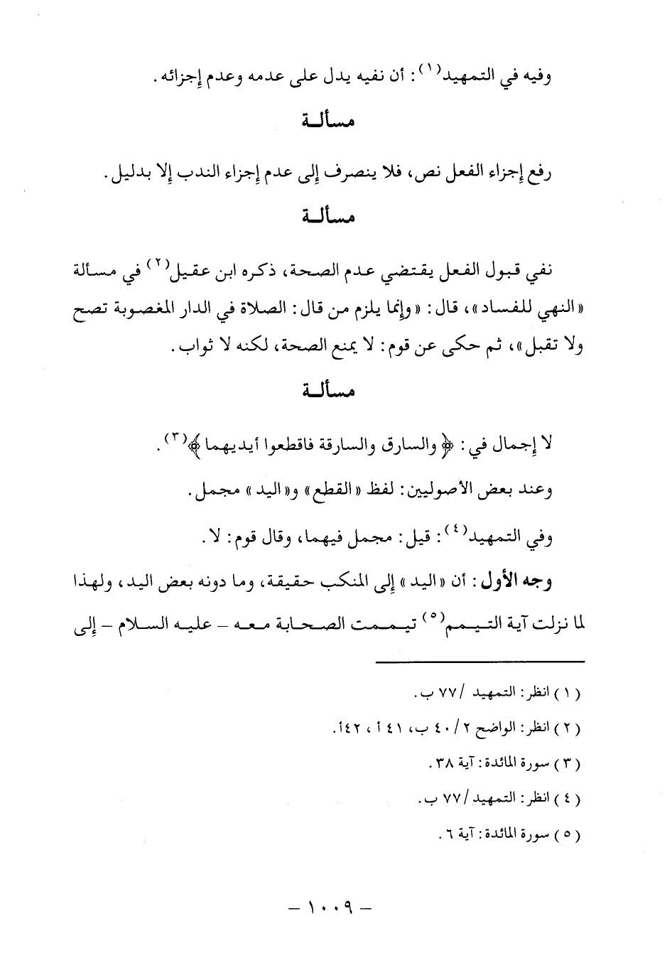 لا إِجمال في: (والسارق والسارقة فاقطعوا أيديهما) (٣).
