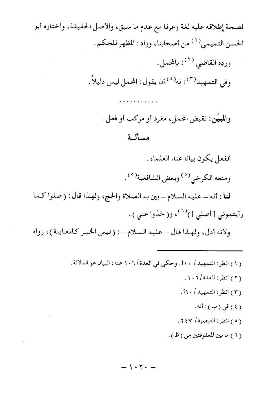 (١) انظر: التمهيد/ ١٠ أ. وحكى في العدة/ ١٠٦ عنه: البيان هو الدلالة.
