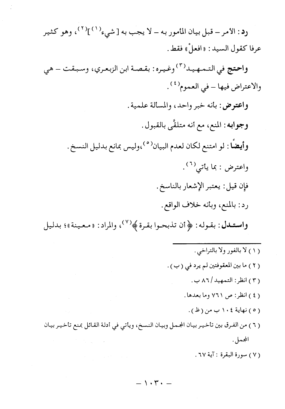 (٦) من الفرق بين تأخير بيان المجمل وبيان النسخ، ويأتي في أدلة القائل بمنع تأخير بيان المجمل.