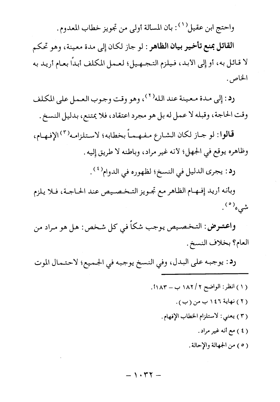 رد: يجرى الدليل في النسخ، لظهوره في الدوام (٤).