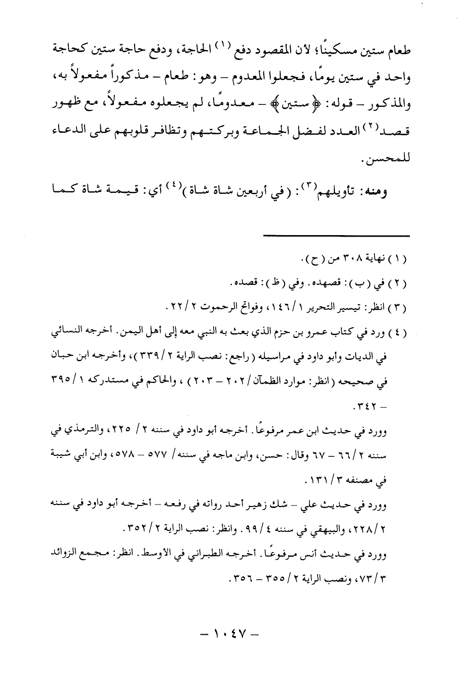 (٤) ورد في كتاب عمرو بن حزم الذي بعث به النبي معه إِلى أهل اليمن. أخرجه النسائي في الديات وأبو داود في مراسيله (راجع: نصب الراية ٢/ ٣٣٩)، وأخرجه ابن حبان في صحيحه (انظر: موارد الظمآن/ ٢٠٢ - ٢٠٣)، والحاكم في مستدركه ١/ ٣٩٥ - ٣٤٢.