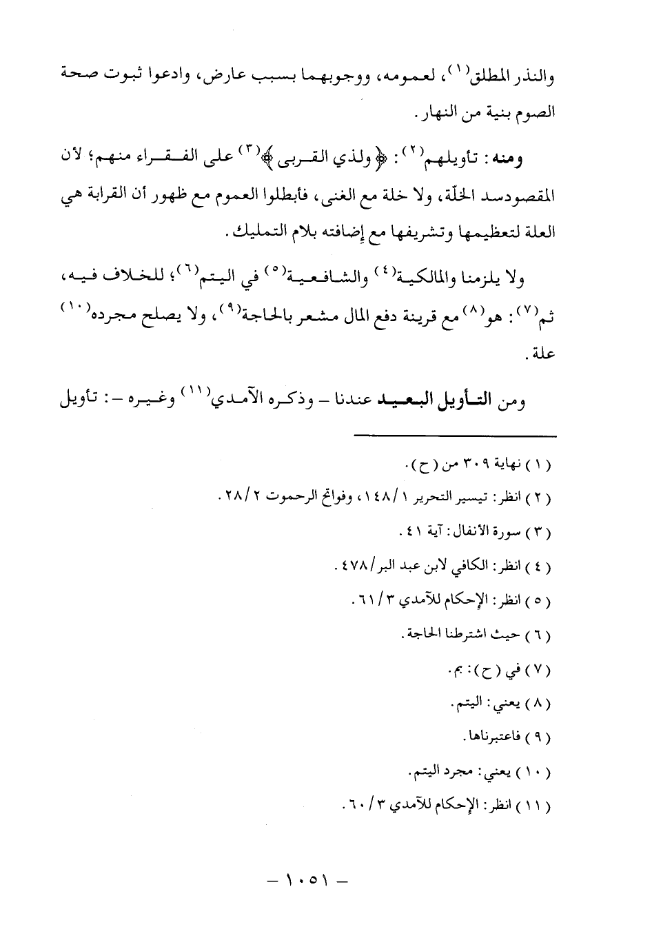 ومنه: تأويلهم (٢): (ولذي القربى) (٣) على الفقراء منهم؛ لأن المقصود سد الخلّة، ولا خلة مع الغنى، فأبطلوا العموم مع ظهور أن القرابة هي العلة لتعظيمها وتشريفها مع إِضافته بلام التمليك.