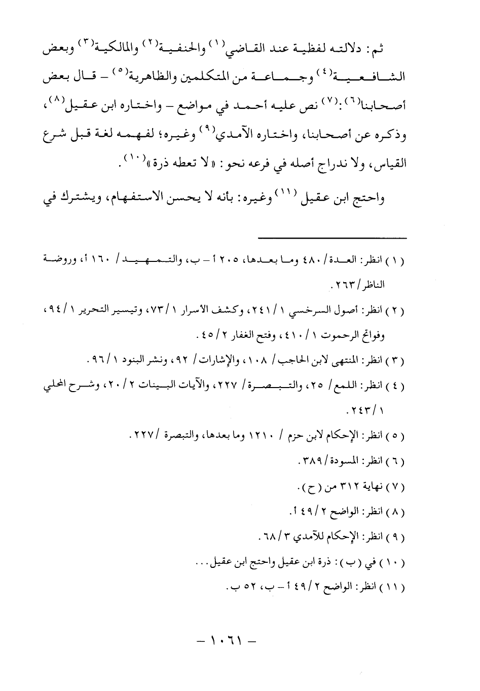 (٣) انظر: المنتهى لابن الحاجب/ ١٠٨، والإِشارات/ ٩٢، ونشر البنود ١/ ٩٦.