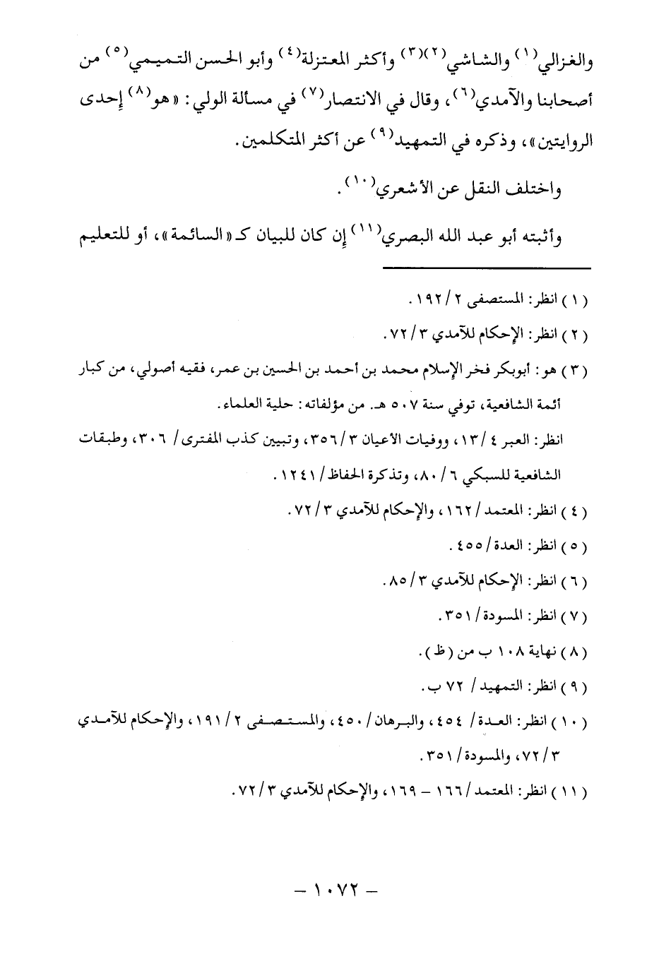 (١١) انظر: المعتمد/ ١٦٦ - ١٦٩، والإِحكام للآمدي ٣/ ٧٢.