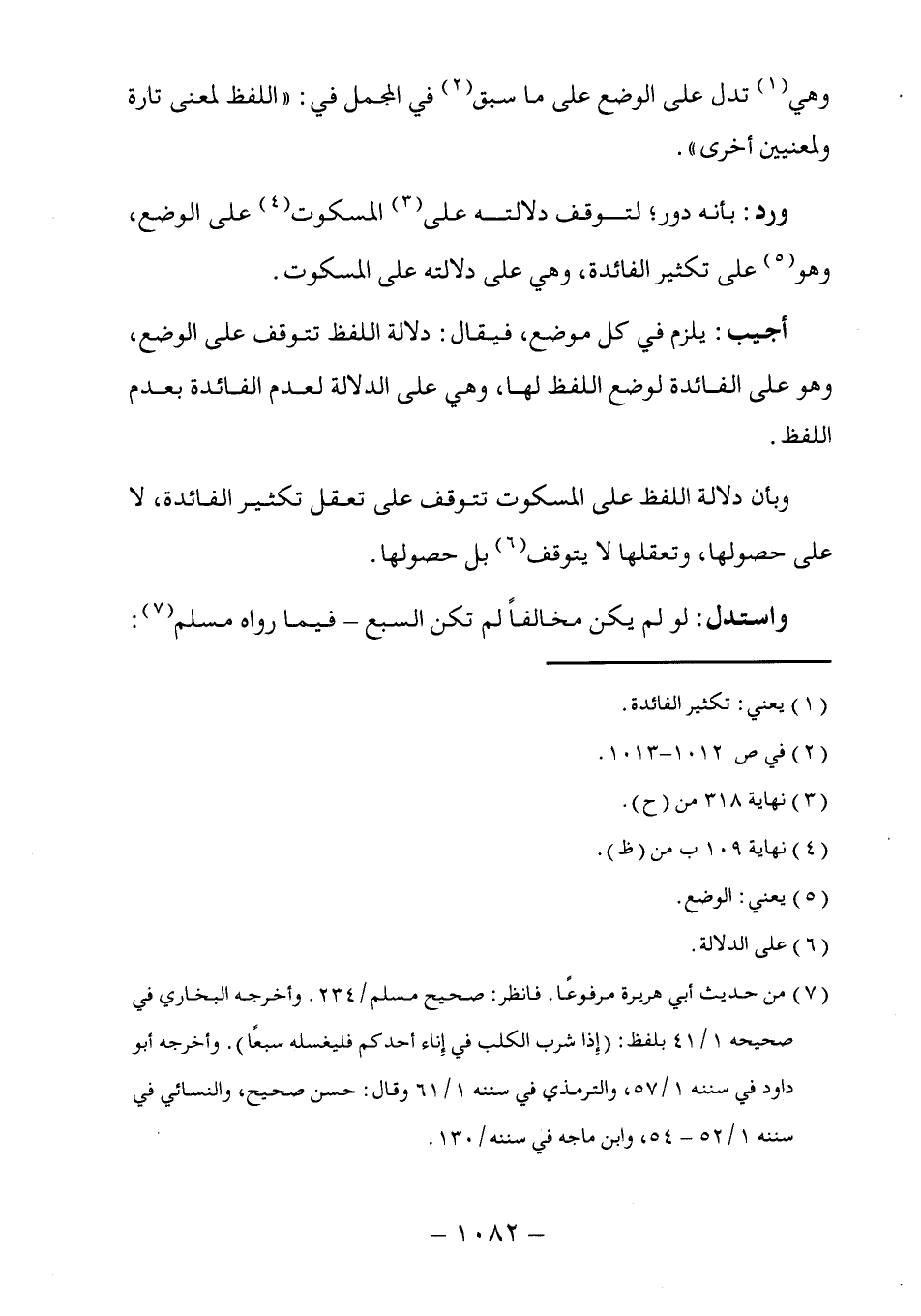 ورد: بأنه دور؛ لتوقف دلالته على (٣) المسكوت (٤) على الوضع، وهو (٥) على تكثير الفائدة، وهي على دلالته على المسكوت.