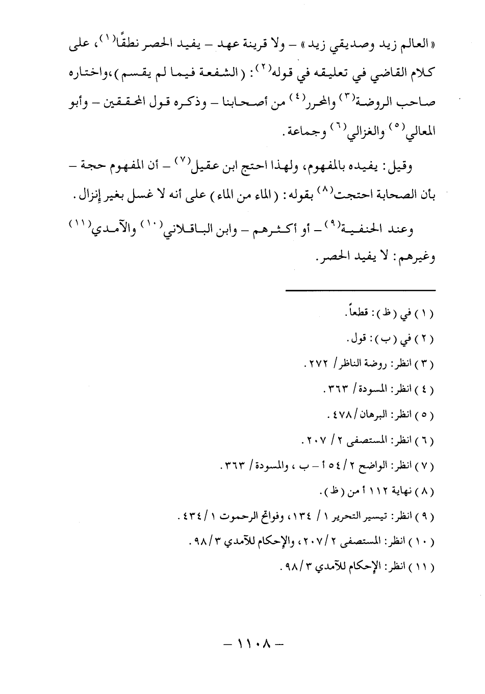 (١٠) انظر: المستصفى ٢/ ٢٠٧، والإِحكام للآمدي ٣/ ٩٨.