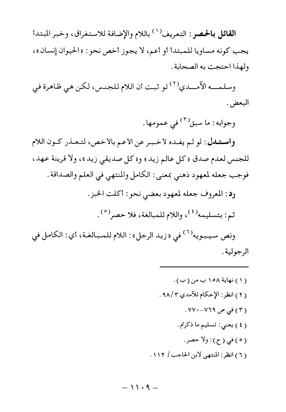 (٦) انظر: المنتهى لابن الحاجب/ ١١٢.