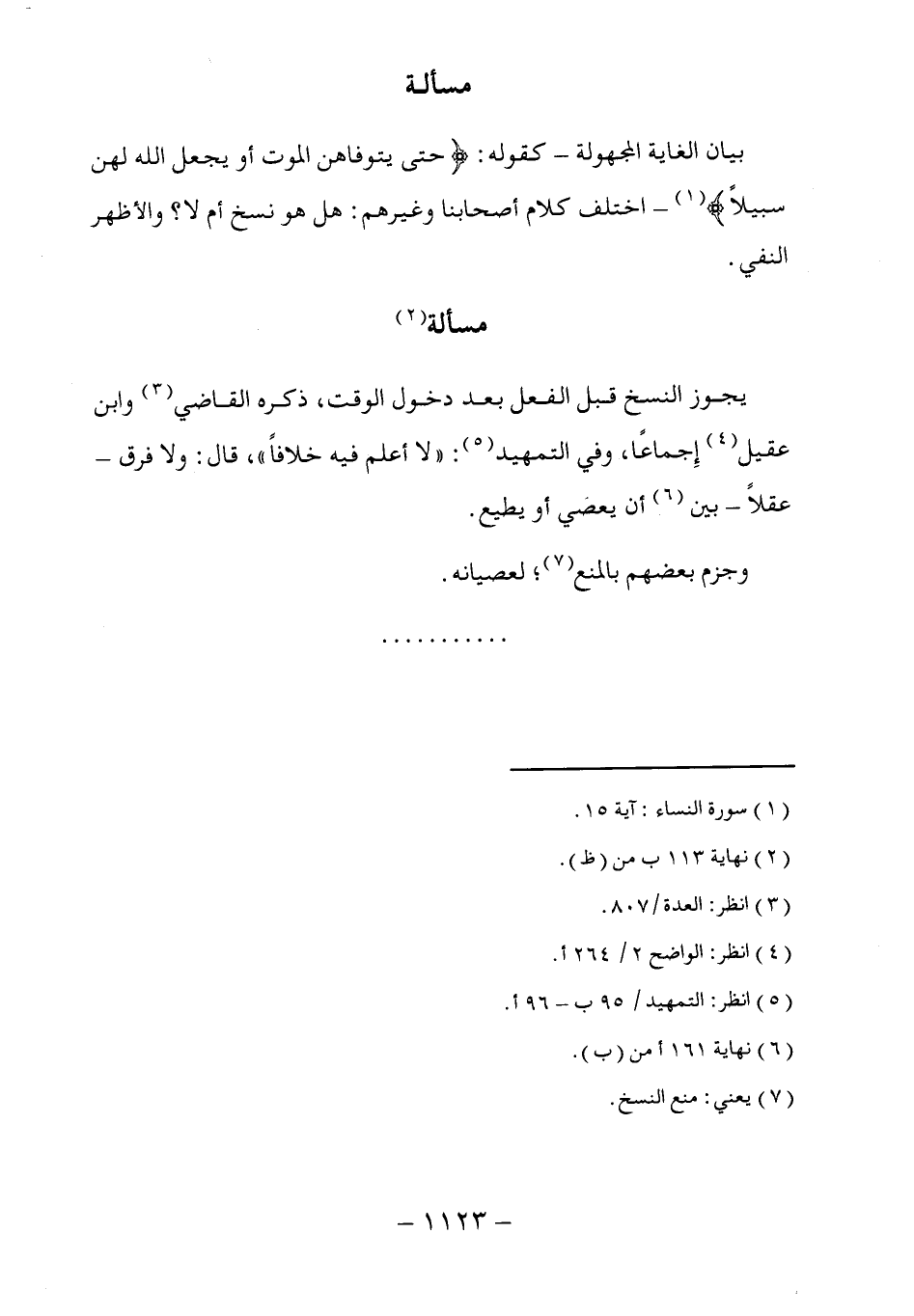 (٧) يعني: منع النسخ.
