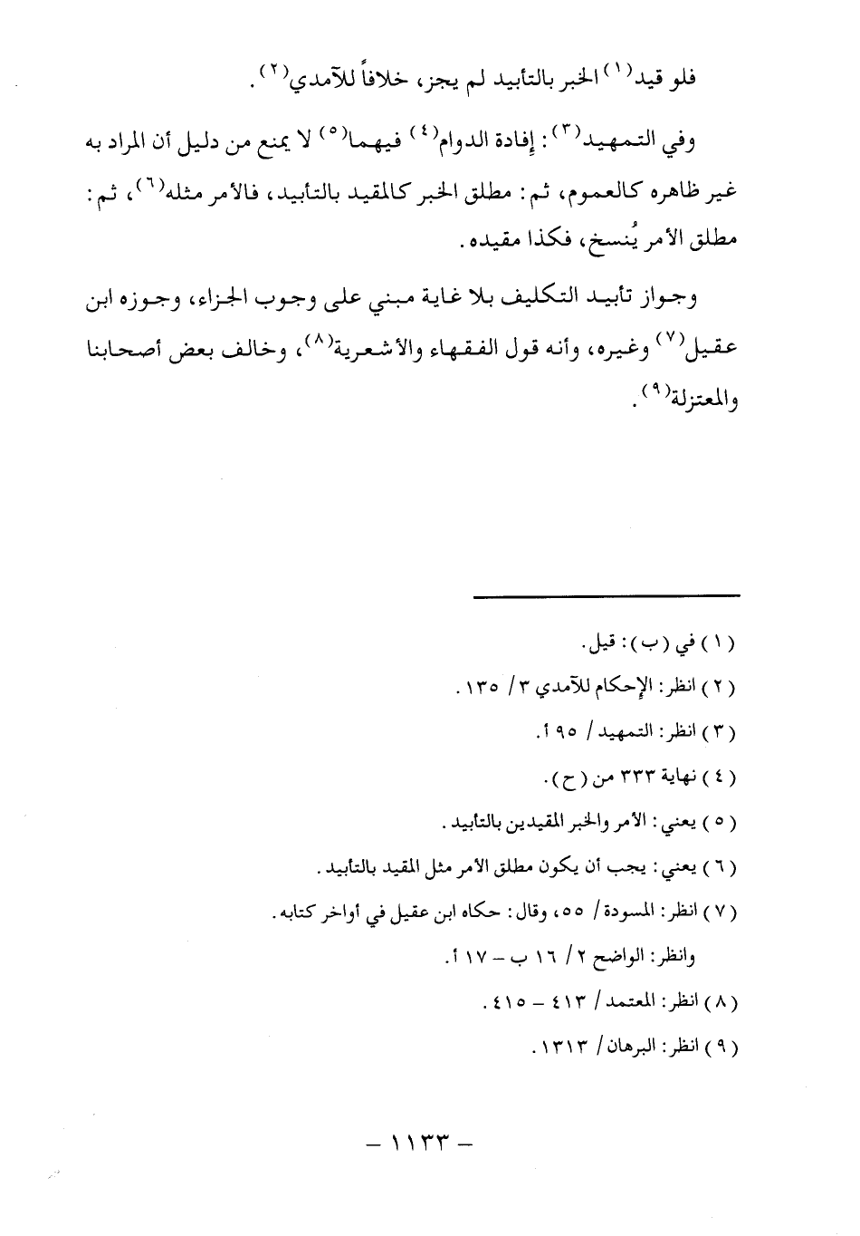 وجواز تأبيد التكليف بلا غاية مبني على وجوب الجزاء، وجوزه ابن عقيل (٧) وغيره، وأنه قول الفقهاء والأشعرية (٨)، وخالف بعض أصحابنا والمعتزلة (٩).