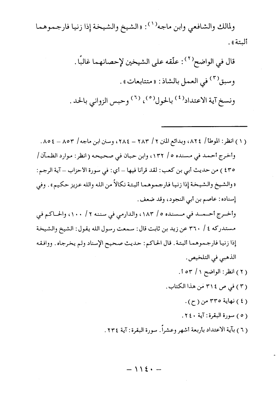 وأخرج أحمد في مسنده ٥/ ١٨٣، والدارمي في سننه ٢/ ١٠٠، والحاكم في مستدركه ٤/ ٣٦٠ عن زيد بن ثابت قال: سمعت رسول الله يقول: الشيخ والشيخة إِذا زنيا فارجموهما البتة. قال الحاكم: حديث صحيح الإِسناد ولم يخرجاه. ووافقه الذهبي في التلخيص.