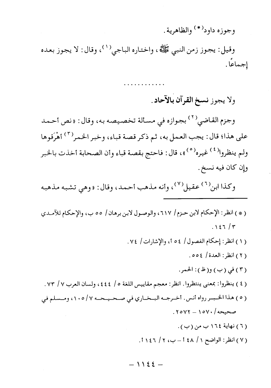 (*) انظر: الإِحكام لابن حزم/ ٦١٧، والوصول لابن برهان/ ٥٥ ب، والإِحكام للآمدي ٣/ ١٤٦.