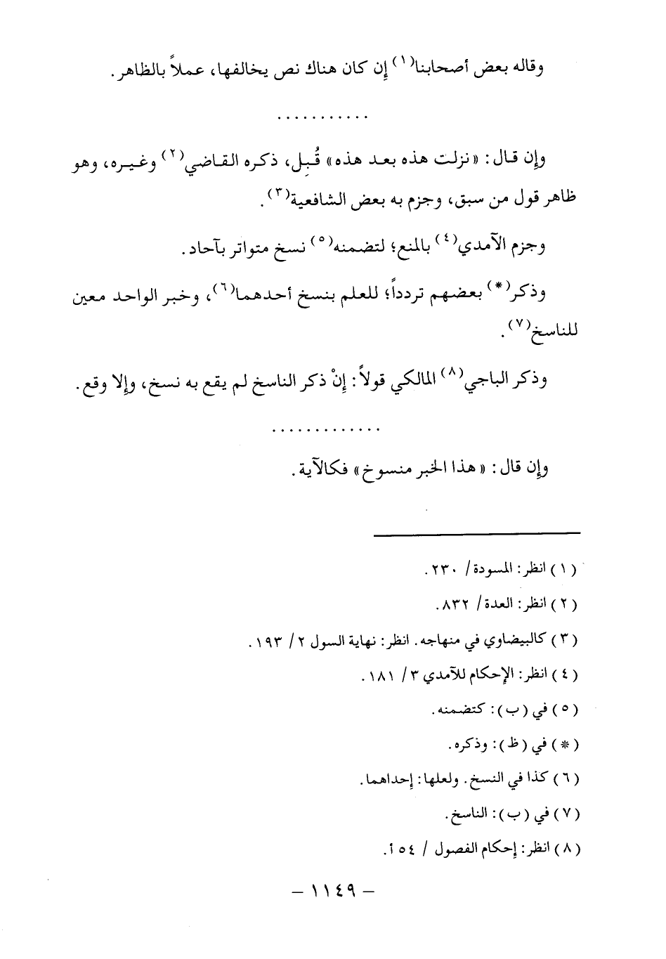 (٨) انظر: إِحكام الفصول / ٥٤أ.