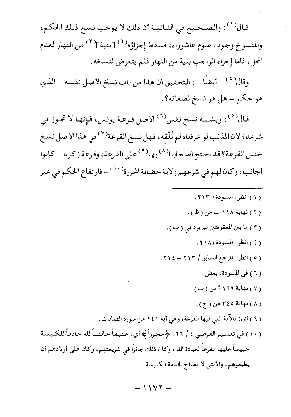 قال (١): والصحيح في الثانية أن ذلك لا يوجب نسخ ذلك الحكم، والمنسوخ وجوب صوم عاشوراء، فسقط إِجزاؤه (٢) [بنية] (٣) من النهار لعدم المحل، فأما إِجزاء الواجب بنية من النهار فلم يتعرض لنسخه.