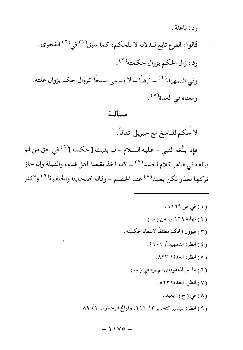 (٩) انظر: تيسير التحرير ٣/ ٢١٦، وفواتح الرحموت ٢/ ٨٩.