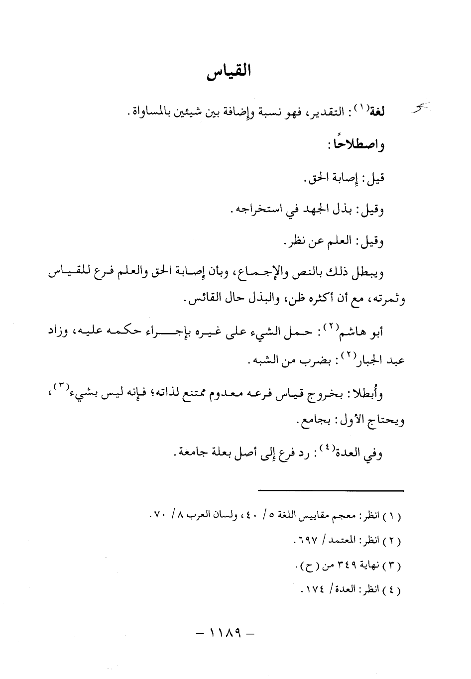 أبو هاشم (٢): حمل الشيء على غيره بإِجراء حكمه عليه، وزاد عبد الجبار (٢): بضرب من الشبه.