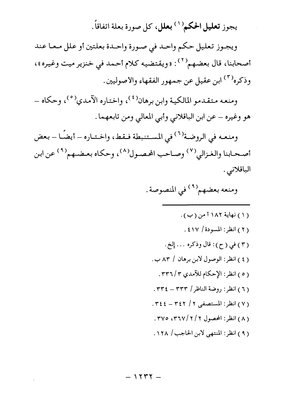 (٩) انظر: المنتهى لابن الحاجب/ ١٢٨.