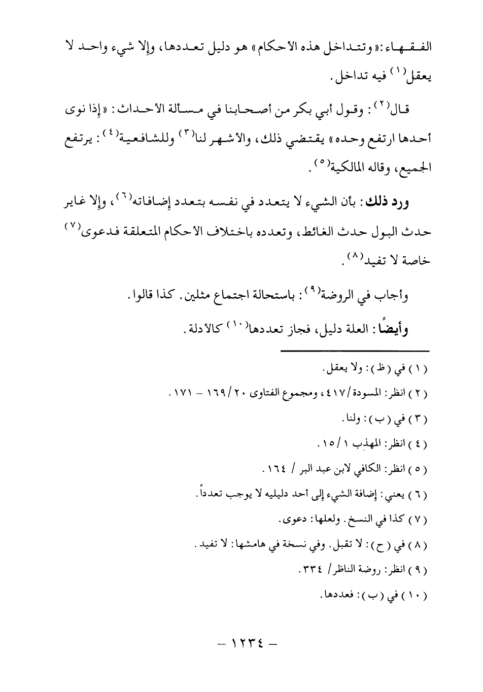 الفقهاء: "وتتداخل هذه الأحكام" هو دليل تعددها، وإِلا شيء واحد لا يعقل (١) فيه تداخل.