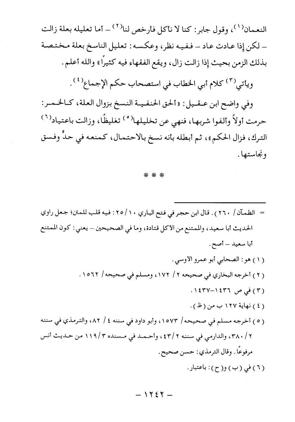 النعمان (١)، وقول جابر: كنا لا نأكل فأرخص لنا (٢) - أما تعليله بعلة زالت -لكن إِذا عادت عاد- ففيه نظر، وعكسه: تعليل الناسخ بعلة مختصة بذلك الزمن بحيث إِذا زالت زال، ويقع الفقهاء فيه كثيراً" والله أعلم.