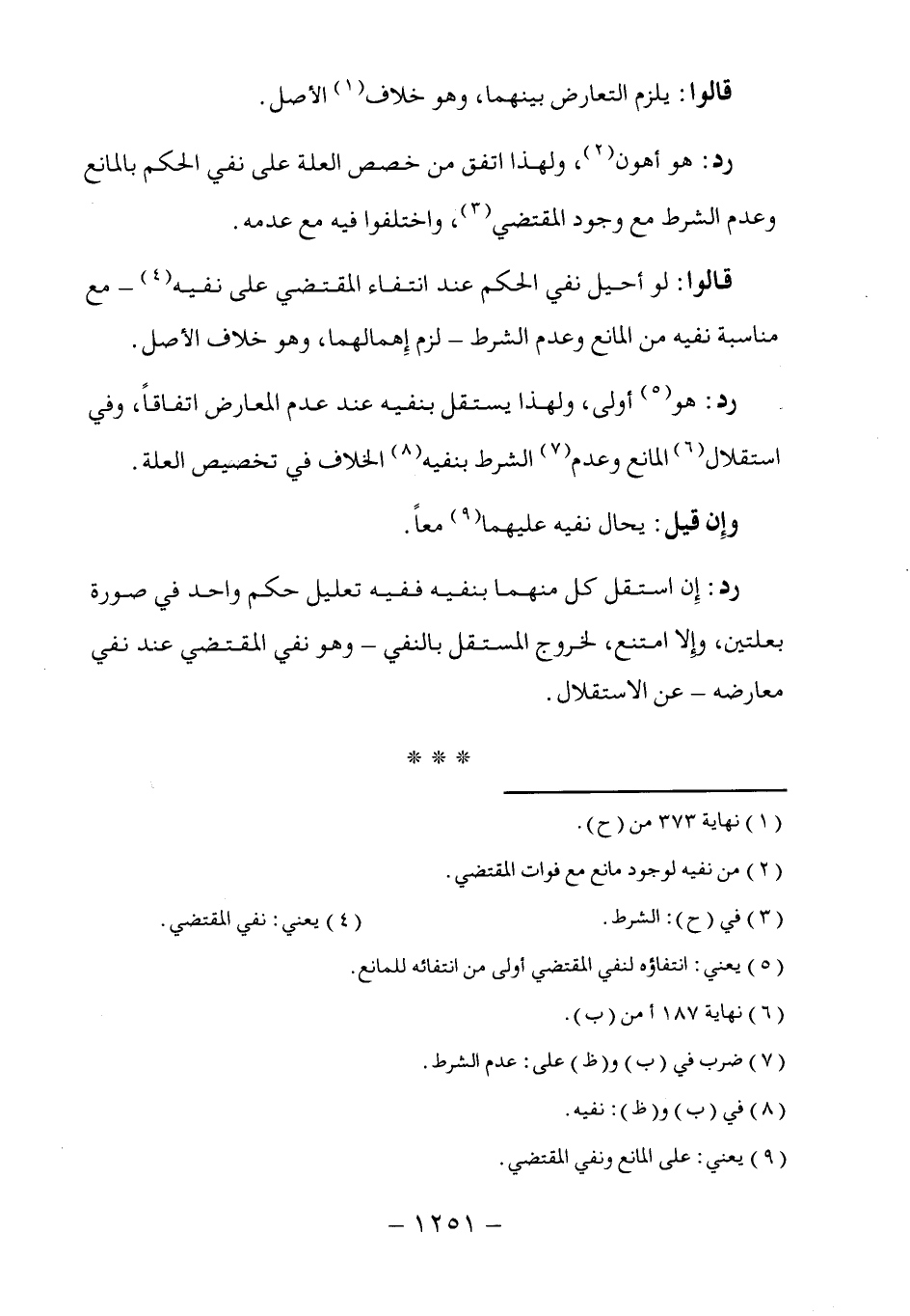 رد: هو (٥) أولى، ولهذا يستقل بنفيه عند عدم المعارض اتفاقاً، وفي استقلال (٦) المانع وعدم (٧) الشرط بنفيه (٨) الخلاف في تخصيص العلة.