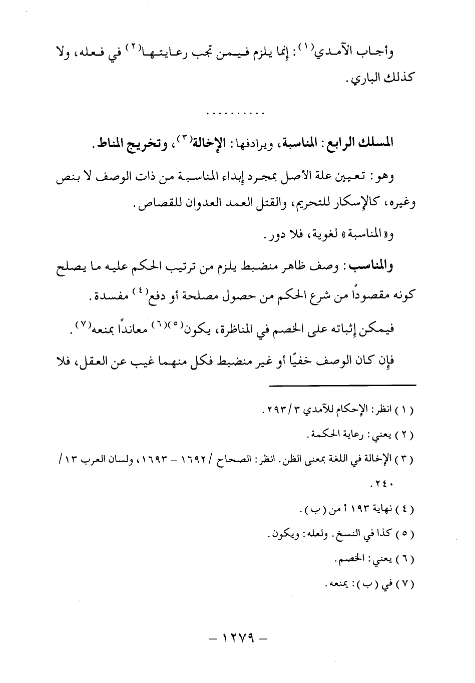(١) انظر: الإِحكام للآمدي ٣/ ٢٩٣.