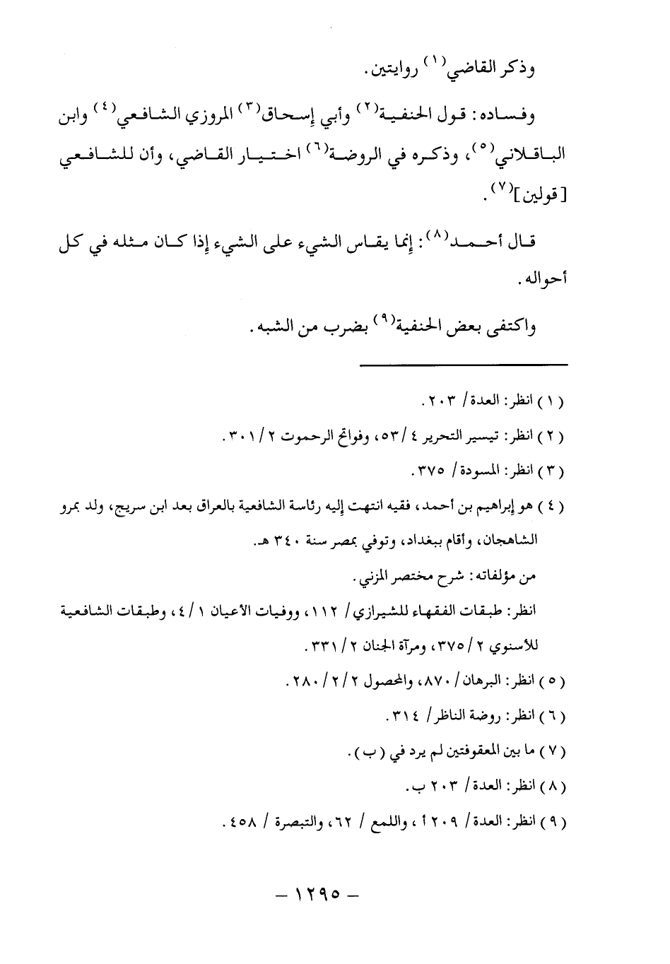 (٩) انظر: العدة/ ٢٠٩ أ، واللمع/ ٦٢، والتبصرة/ ٤٥٨.