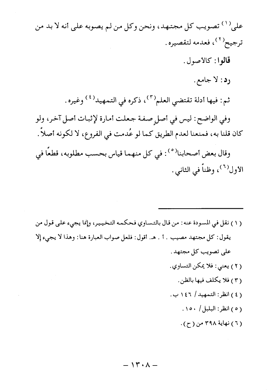 (١) نقل في المسودة عنه: من قال بالتساوي فحكمه التخيير، وإنما يجيء على قول من يقول: كل مجتهد مصيب. أ. هـ. أقول: فلعل صواب العبارة هنا: وهذا لا يجيء إِلا على تصويب كل مجتهد.