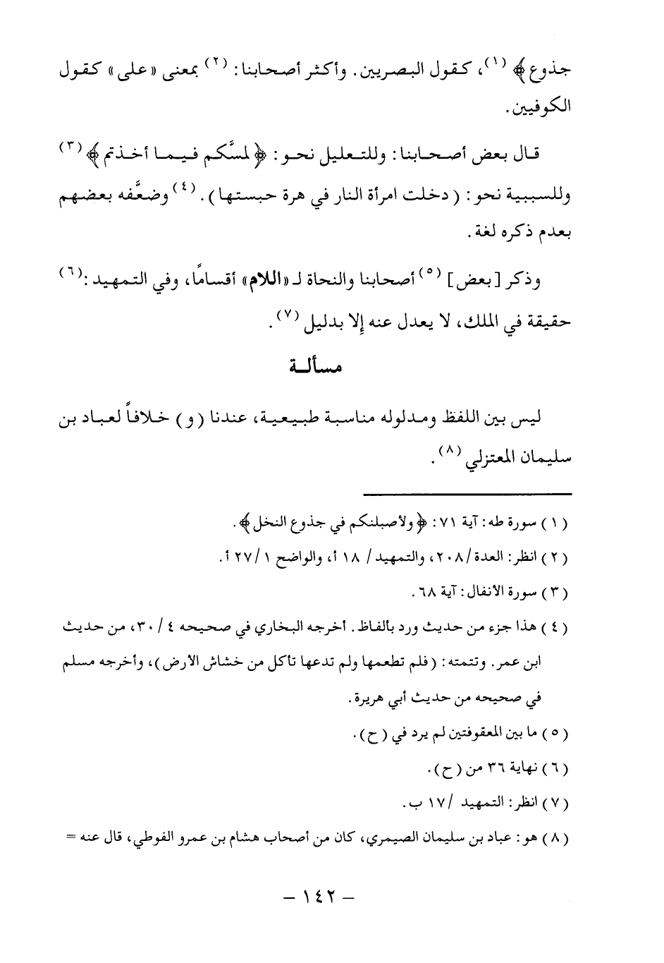 ليس بين اللفظ ومدلوله مناسبة طبيعية، عندنا (و) خلافاً لعباد بن سليمان المعتزلي (٨).