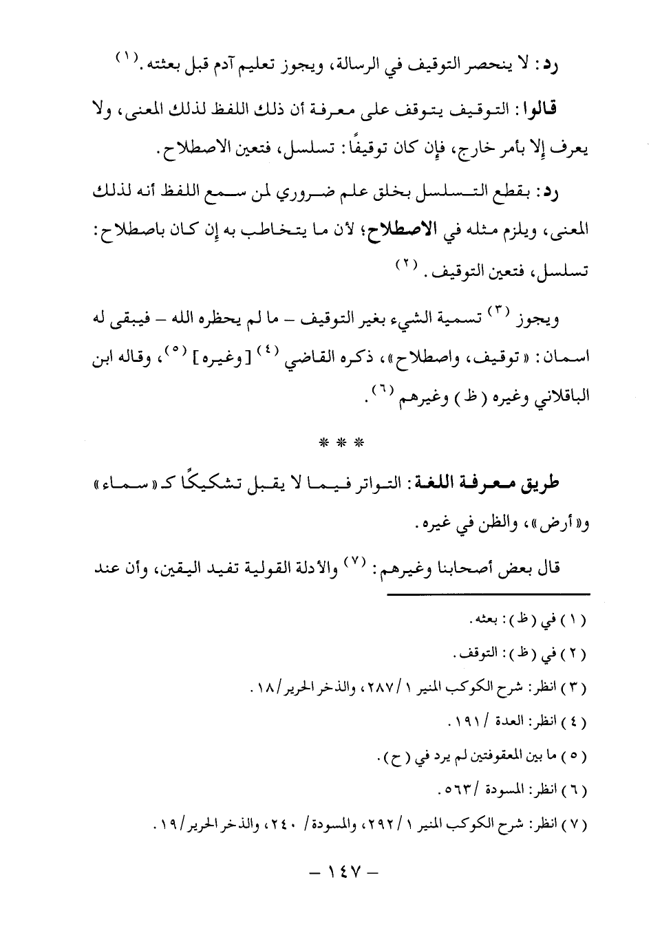 (٣) انظر: شرح الكوكب المنير ١/ ٢٨٧، والذخر الحرير/ ١٨.