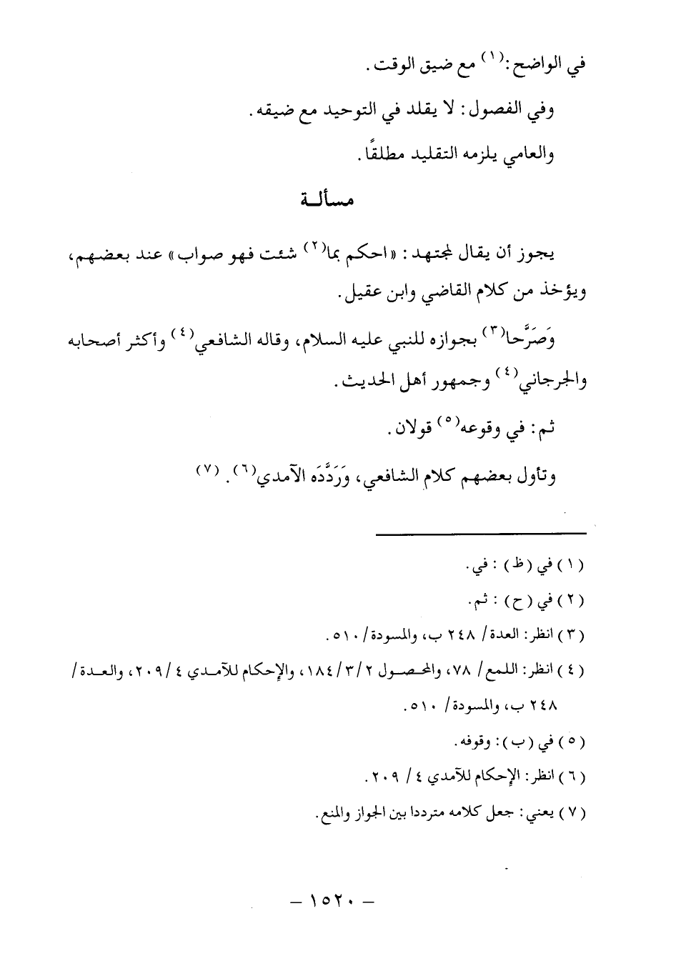(٤) انظر: اللمع/ ٧٨، والمحصول ٢/ ٣/ ١٨٤، والإحكام للآمدي ٤/ ٢٠٩، والعدة/ ٢٤٨ ب، والمسودة/ ٥١٠.