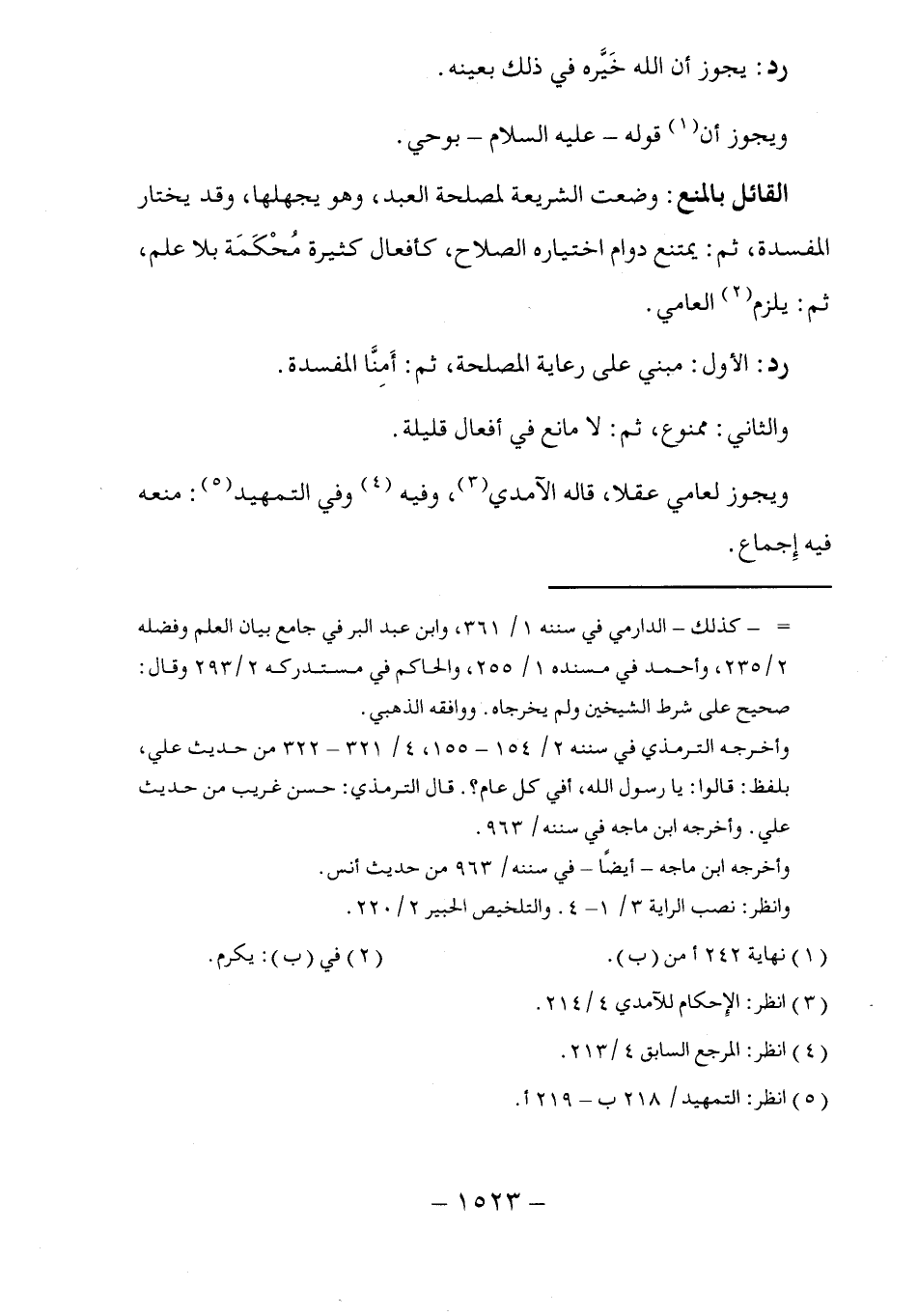 رد: يجوز أن الله خَيَّره في ذلك بعينه.