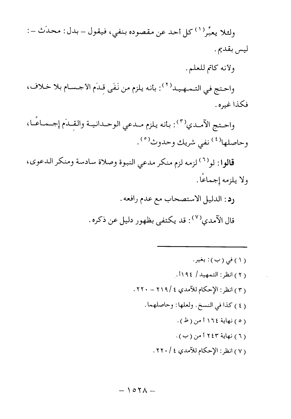 (٧) انظر: الإِحكام للآمدي ٤/ ٢٢٠.