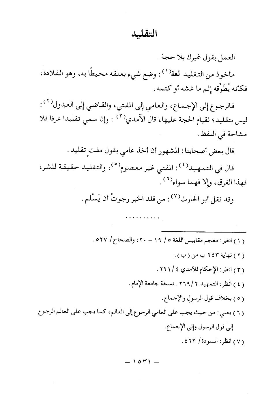 (٦) يعني: من حيث يجب على العامي الرجوع إلى العالم، كما يجب على العالم الرجوع إِلى قول الرسول وإلى الإِجماع.