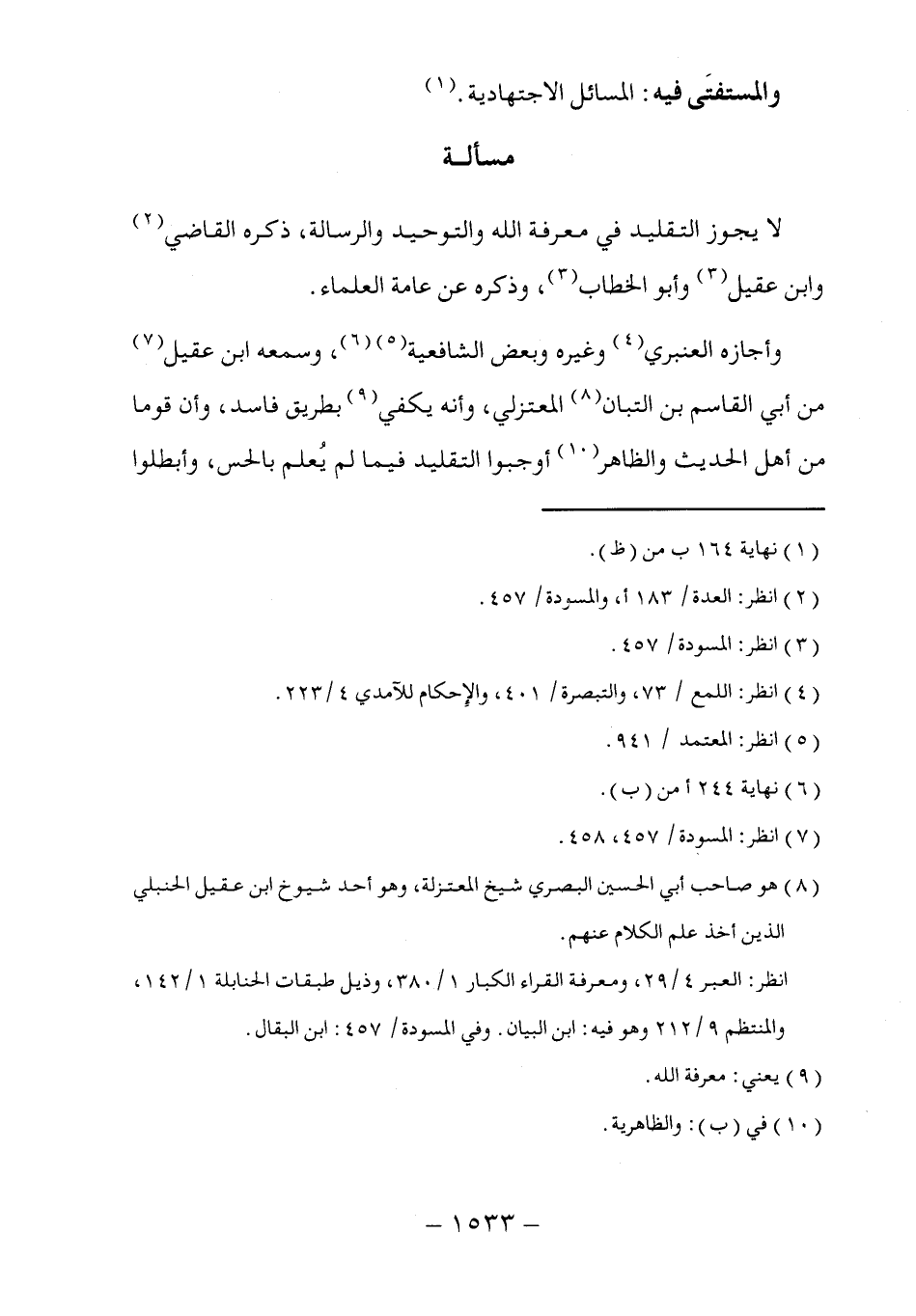 (٧) انظر: المسودة/ ٤٥٧، ٤٥٨.
