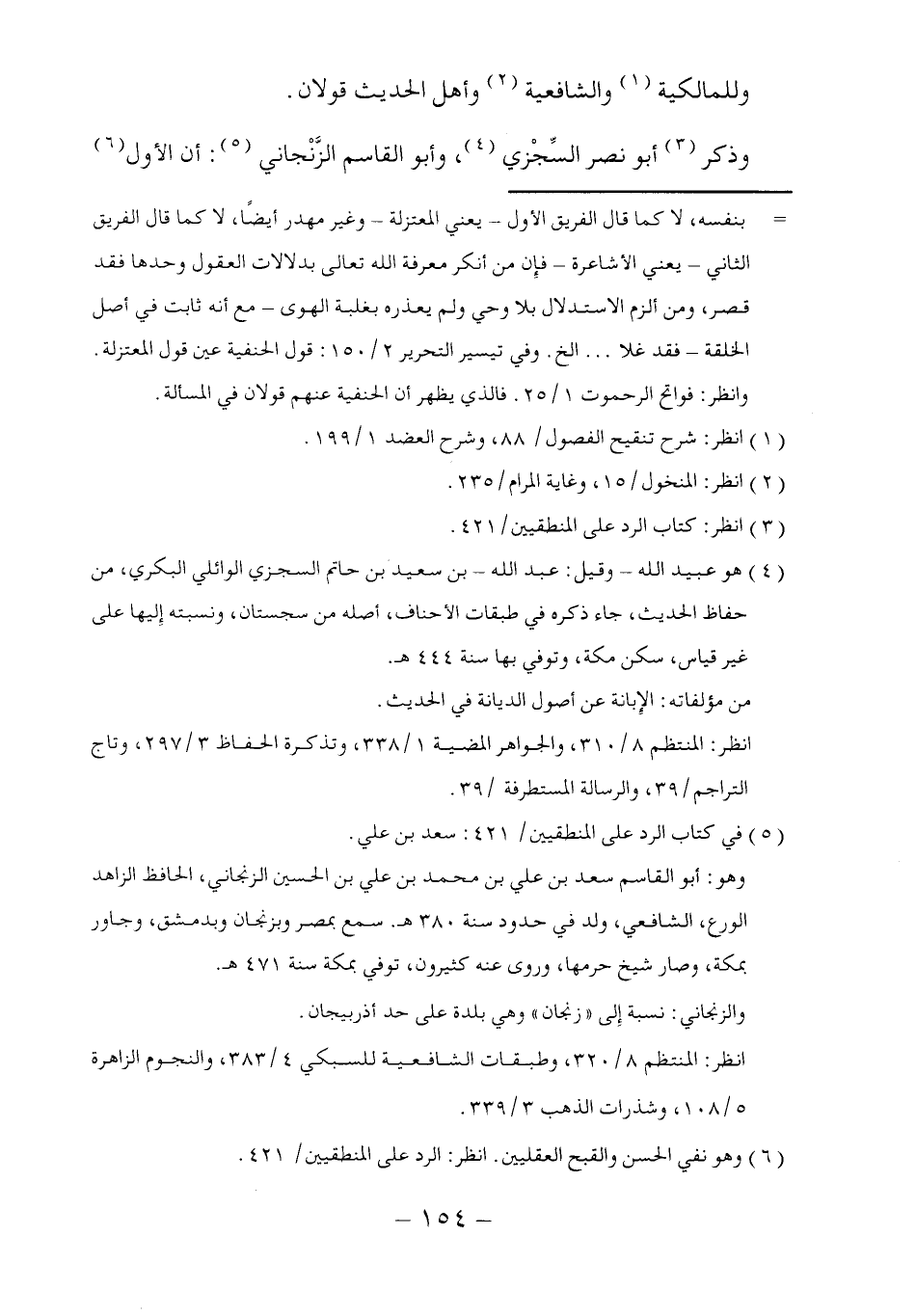 وذكر (٣) أبو نصر السِّجْزي (٤)، وأبو القاسم الزَّنْجاني (٥): أن الأول (٦)