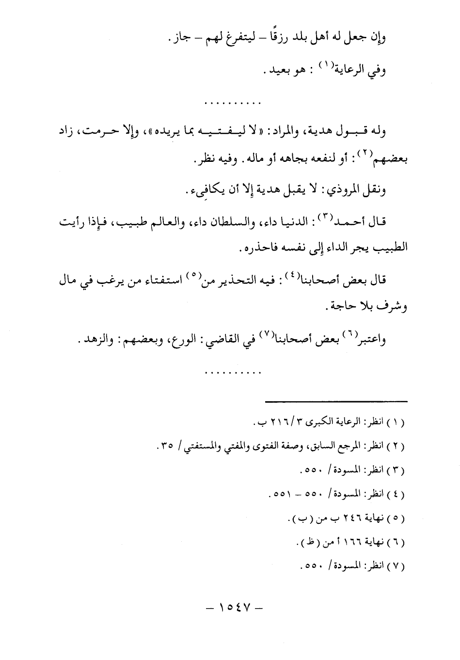 (١) انظر: الرعاية الكبرى ٣/ ٢١٦ ب.