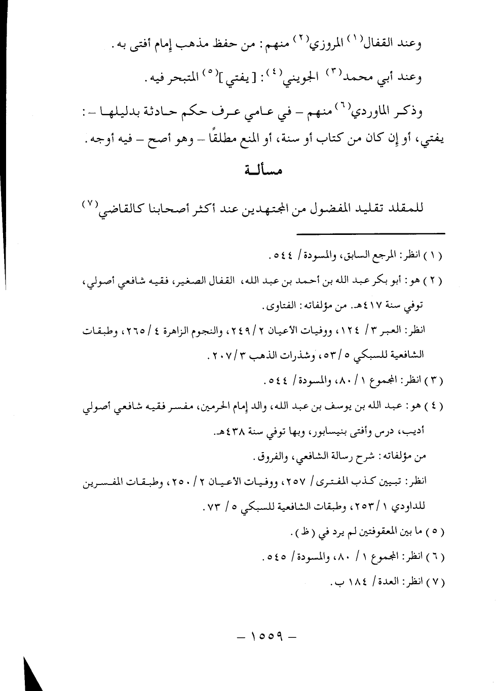 (٢) هو: أبو بكر عبد الله بن أحمد بن عبد الله، القفال الصغير، فقيه شافعي أصولي، توفي سنة ٤١٧ هـ. من مؤلفاته: الفتاوى.