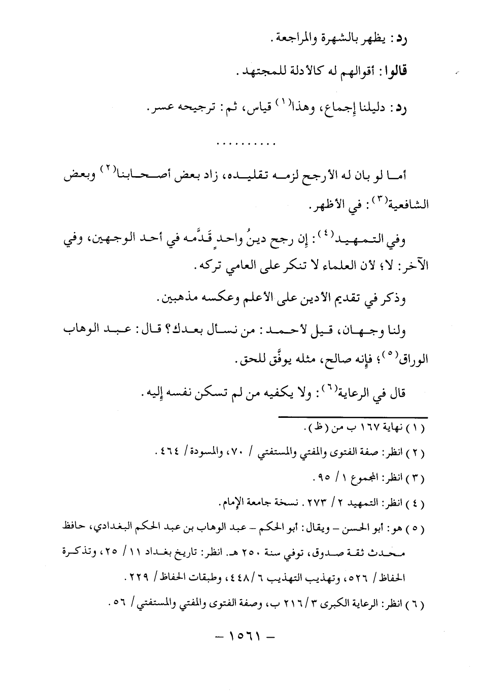 (٦) انظر: الرعاية الكبرى ٣/ ٢١٦ ب، وصفة الفتوى والمفتي والمستفتي/ ٥٦.