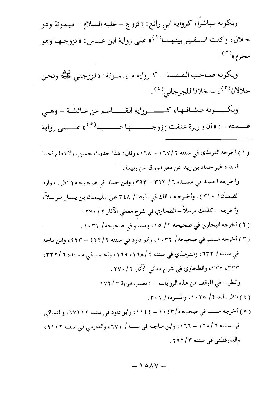 (٣) أخرجه مسلم في صحيحه/ ١٠٣٢، وأبو داود في سننه ٢/ ٤٢٢ - ٤٢٣، وابن ماجه في سننه/ ٦٣٢، والترمذي في سننه ٢/ ١٦٨، ١٦٩، وأحمد في مسنده ٦/ ٣٣٢، ٣٣٣، ٣٣٥، والطحاوي في شرح معاني الآثار ٢/ ٢٧٠.