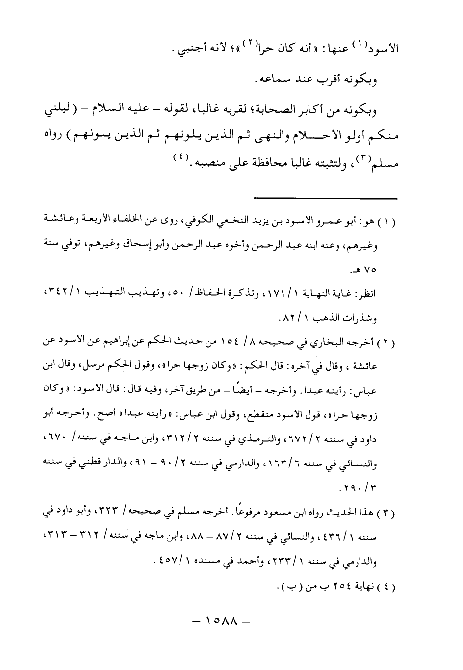 (١) هو: أبو عمرو الأسود بن يزيد النخعي الكوفي، روى عن الخلفاء الأربعة وعائشة وغيرهم، وعنه ابنه عبد الرحمن وأخوه عبد الرحمن وأبو إِسحاق وغيرهم، توفي سنة ٧٥هـ.