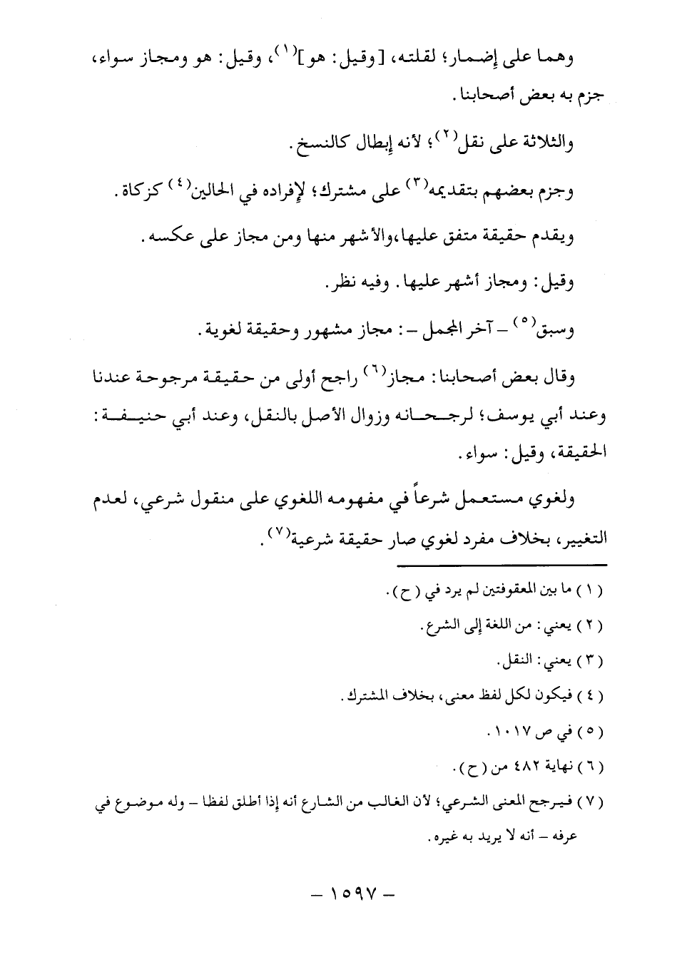 وسبق (٥) -آخر المجمل-: مجاز مشهور وحقيقة لغوية.