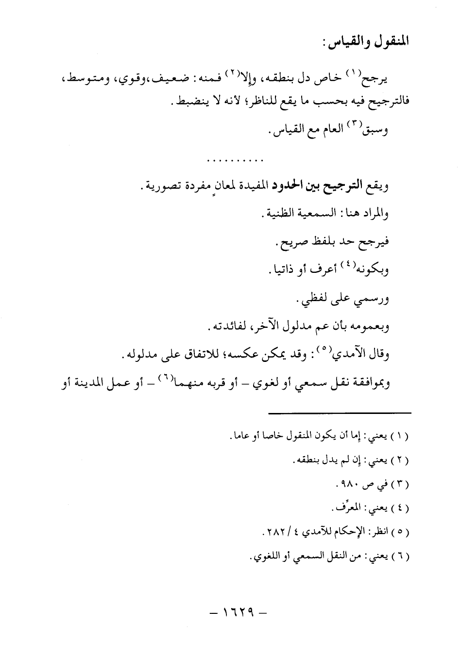 ويقع الترجيح بين الحدود المفيدة لمعانٍ مفردة تصورية.