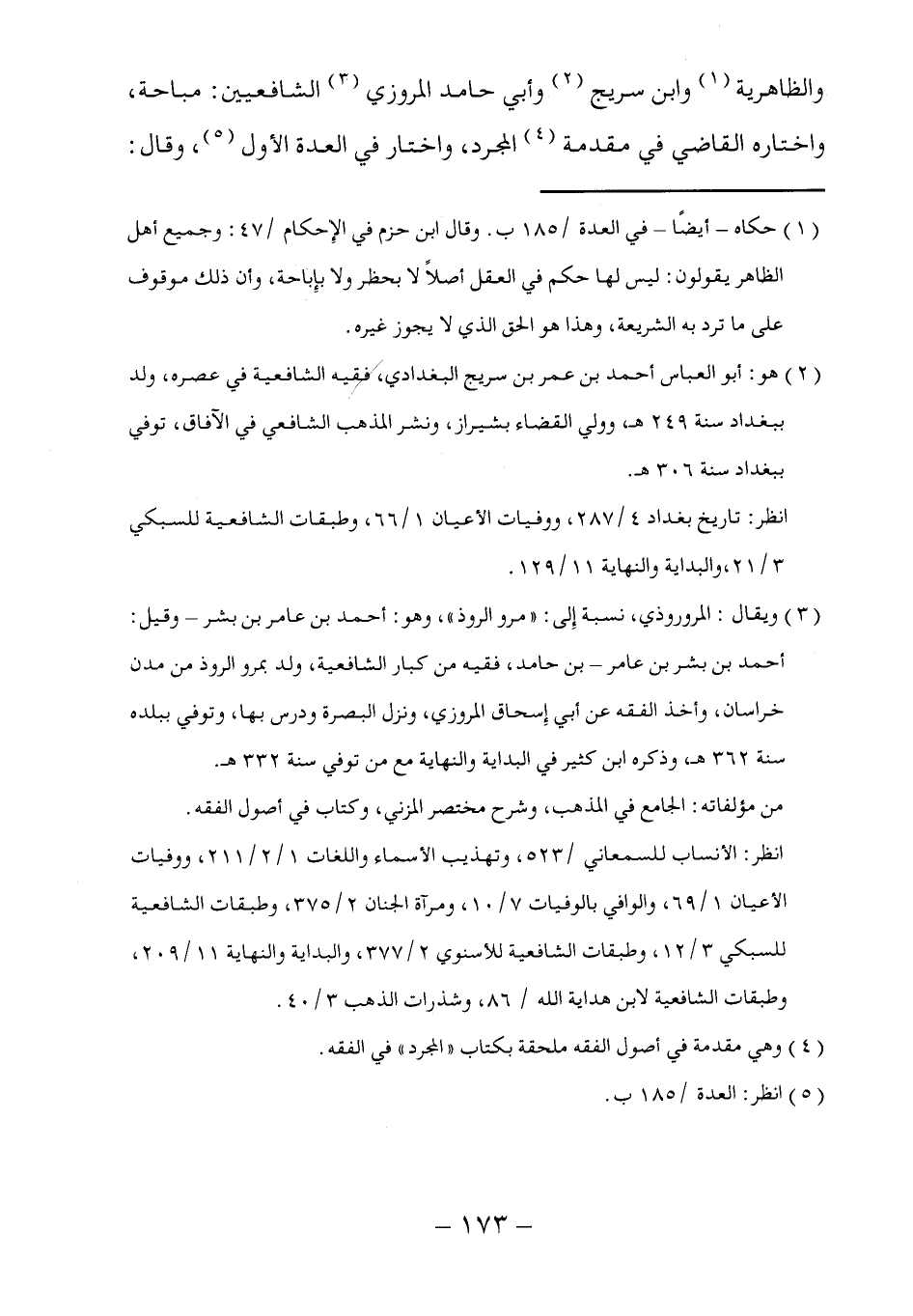 (٢) هو: أبو العباس أحمد بن عمر بن سريج البغدادي، فقيه الشافعية في عصره، ولد ببغداد سنة ٢٤٩ هـ، وولي القضاء بشيراز، ونشر المذهب الشافعي في الآفاق، توفي ببغداد سنة ٣٠٦ هـ.