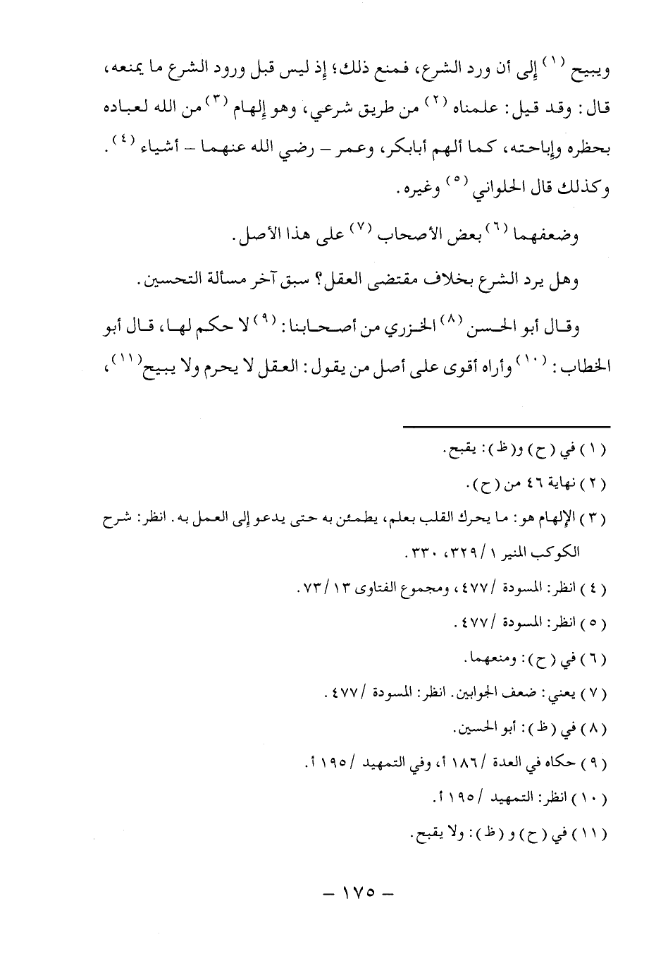 (٣) الإِلهام هو: ما يحرك القلب بعلم، يطمئن به حتى يدعو إِلى العمل به. انظر: شرح الكوكب المنير ١/ ٣٢٩، ٣٣٠.