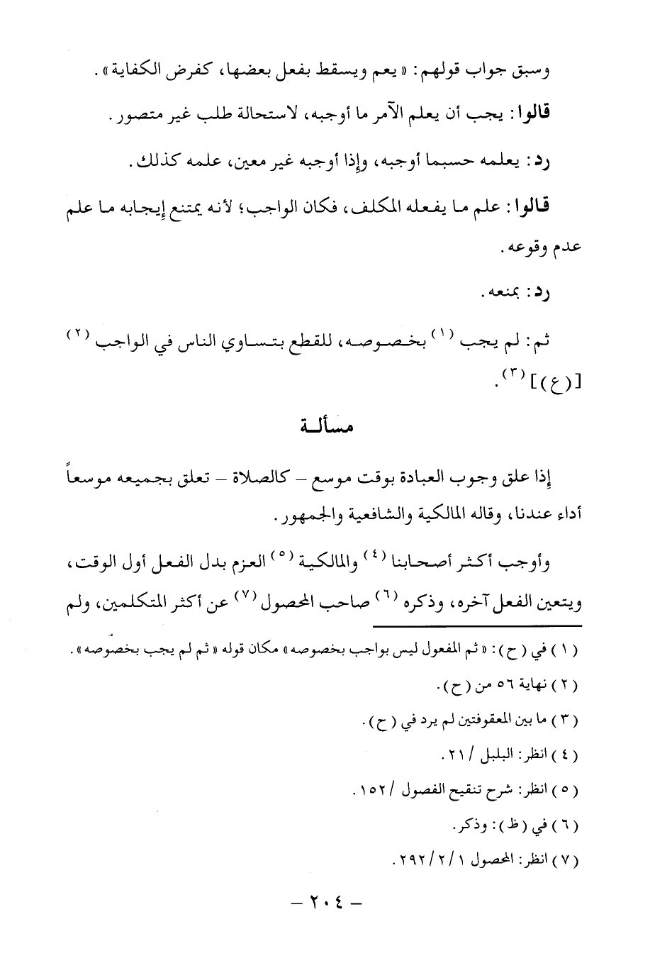 (١) في (ح): "ثم المفعول ليس بواجب بخصوصه" مكان قوله "ثم لم يجب بخصّوصه".