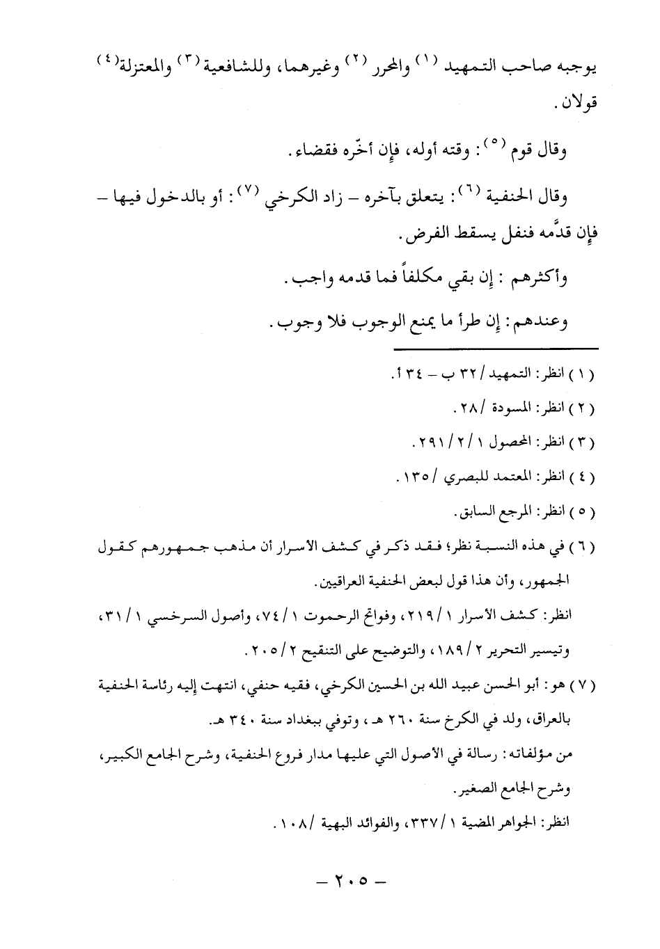 (٧) هو: أبو الحسن عبيد الله بن الحسين الكرخي، فقيه حنفي، انتهت إِليه رئاسة الحنفية بالعراق، ولد في الكرخ سنة ٢٦٠ هـ، وتوفي ببغداد سنة ٣٤٠ هـ.