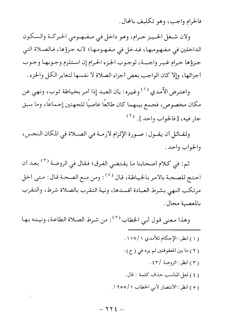 ولقائل أن يقول: صورة الإِلزام لازمة في الصلاة في المكان النجس، والجواب واحد.