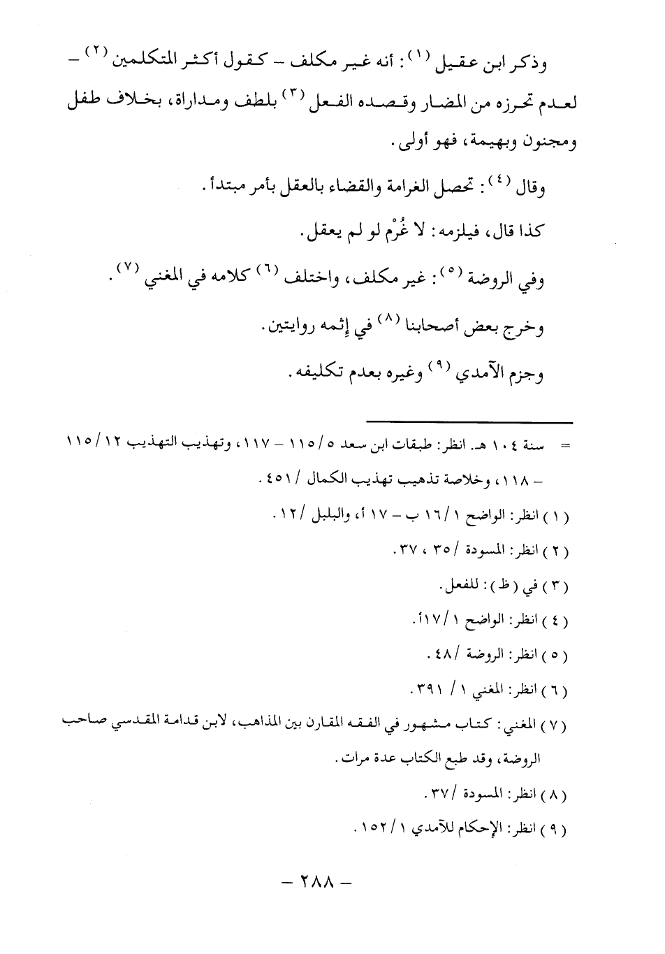 وفي الروضة (٥): غير مكلف، واختلف (٦) كلامه في المغني (٧).